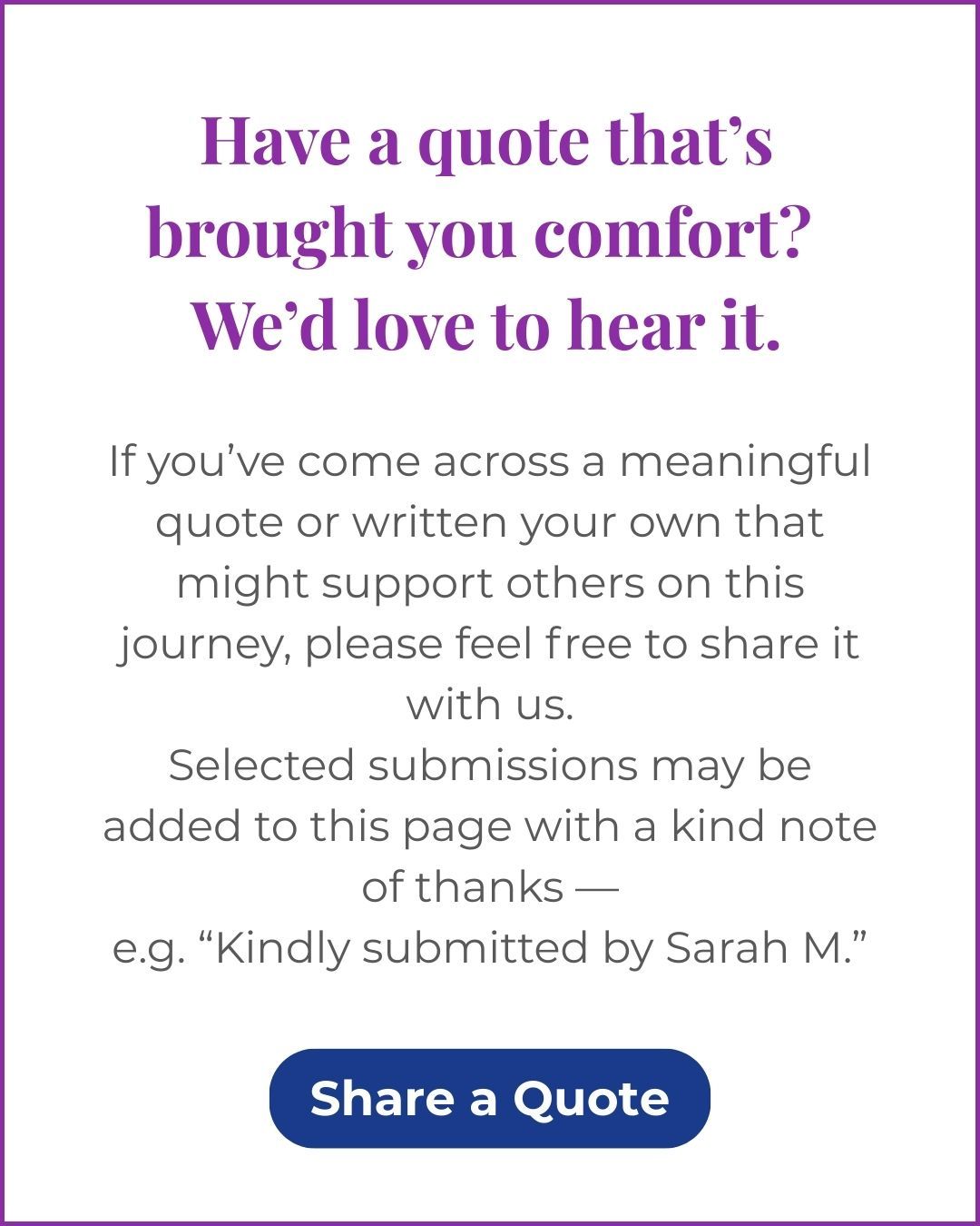If you’ve come across a meaningful quote or written your own that might support others on this journey, please feel free to share it with us.