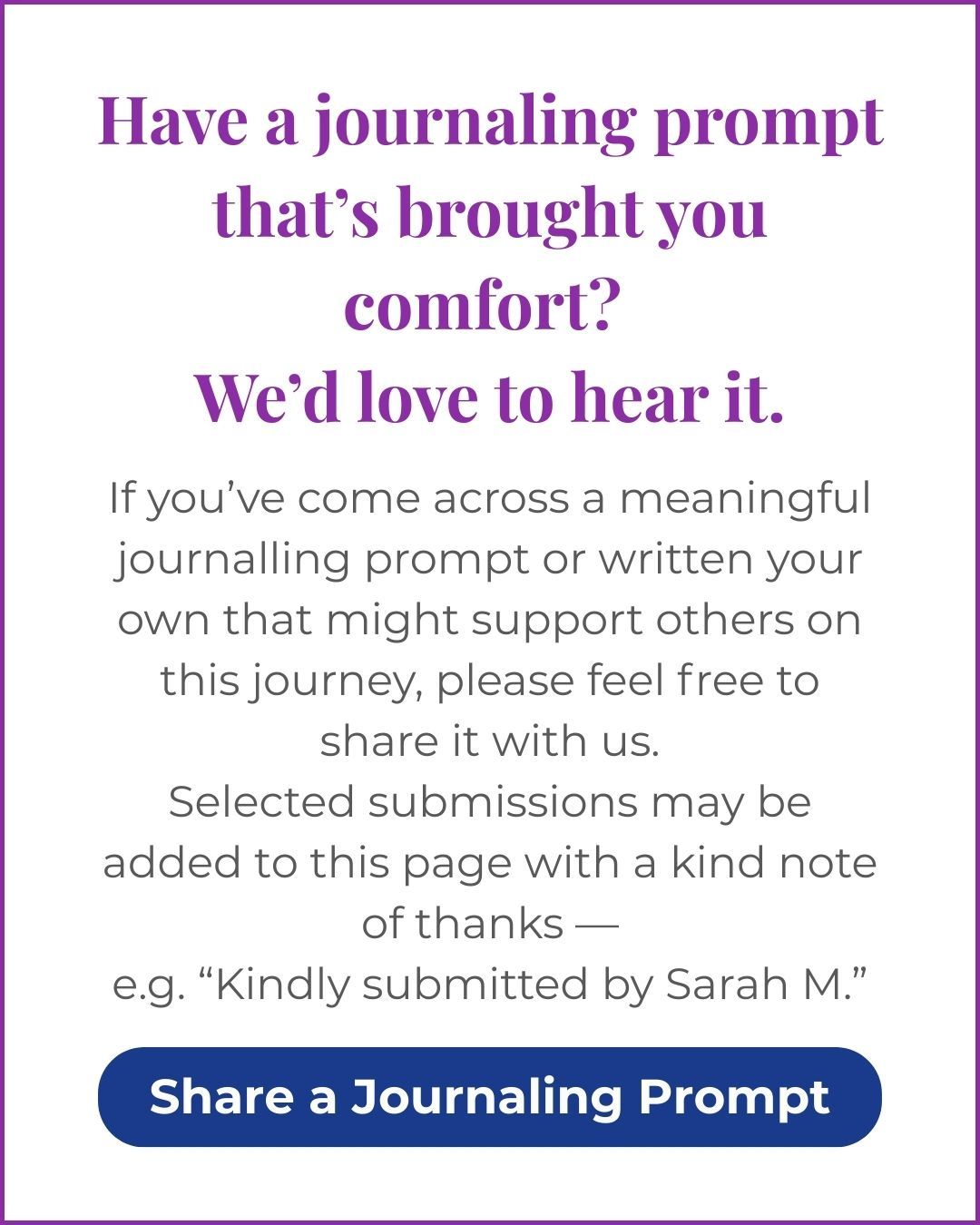 If you’ve come across a meaningful journaling prompts or written your own that might support others on this journey, please feel free to share it with us.
