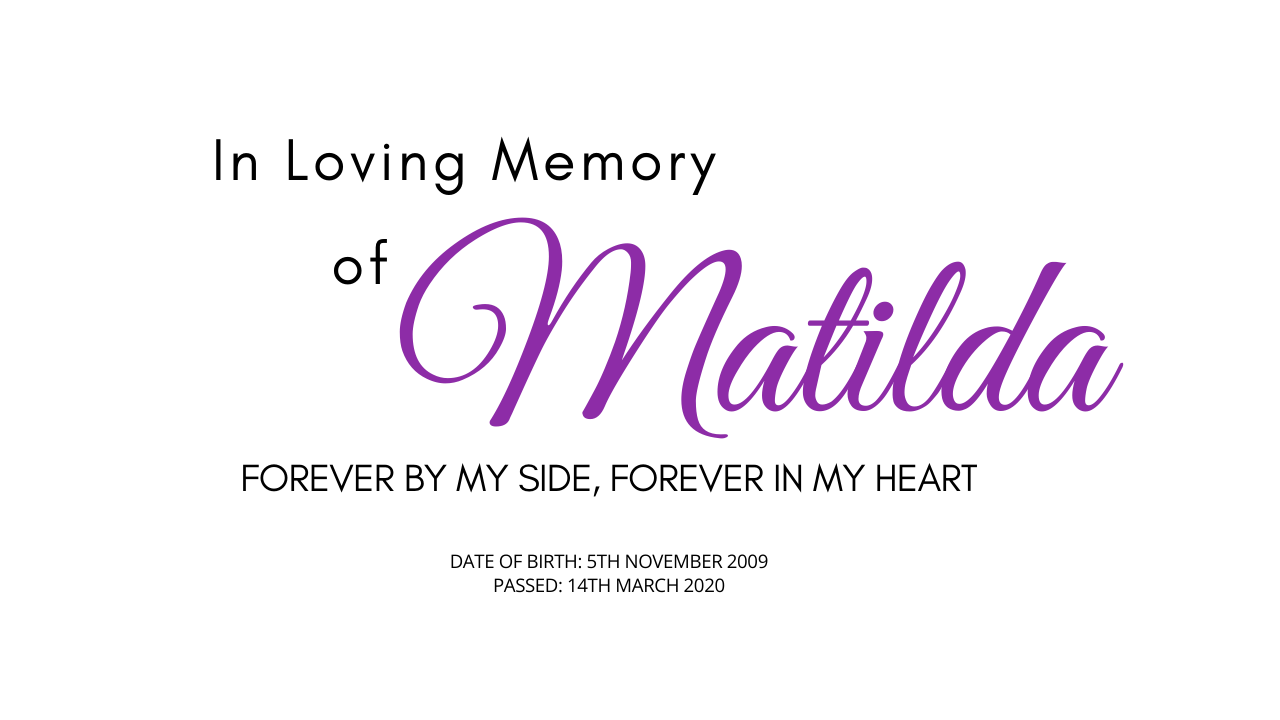 When Matilda passed on 14th March 2020, her absence left a void in my life that can never be filled. But her memory, her love, and the light she brought to my world live on, inspiring me every day.