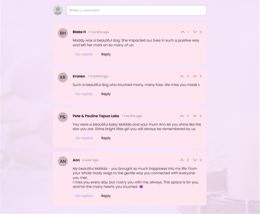 Many people find comfort in having a dedicated place where their pet’s story, photos and memories can be held and shared with family and friends.